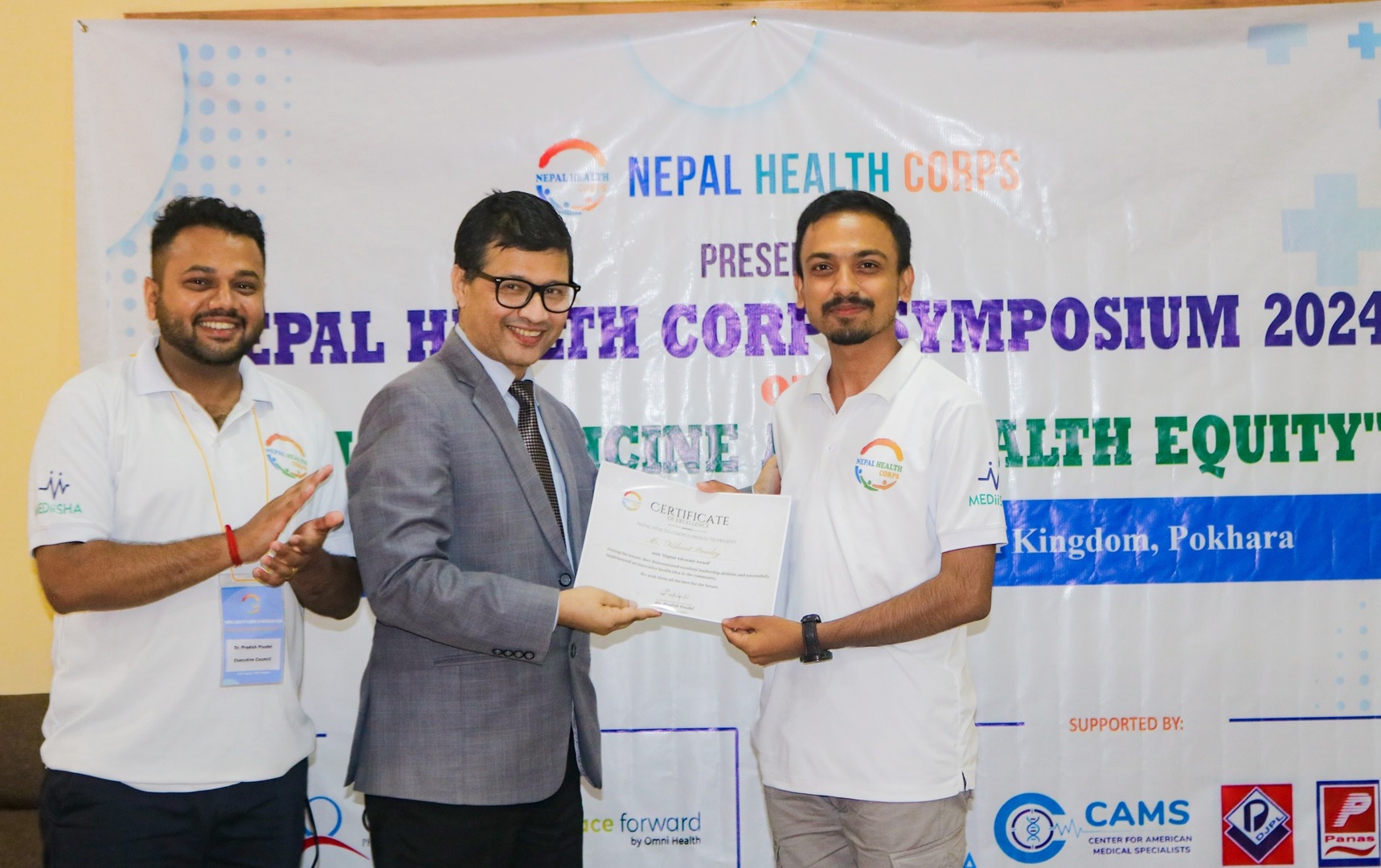 Receiving "Digital Advocate Award" from Dr. Lekhjung Thapa & Dr. Pradish Poudel Founder and President of NHC